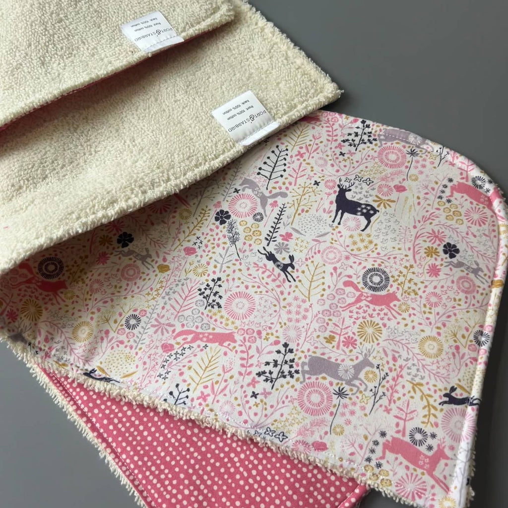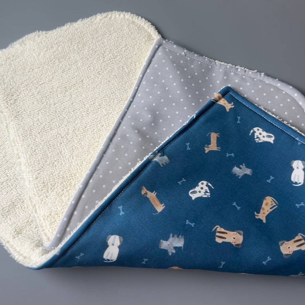 Our handmade cotton burp cloths are a must-have newborn essentials. These burp cloths perfectly absorb spit up and drool, keeping your cloths clean and dry. Our 3 layer, ultra absorbent burp cloths are made of a top layer of 100% quilter's cotton, middle layer of soft and natural batting and backed with cotton terry cloth.